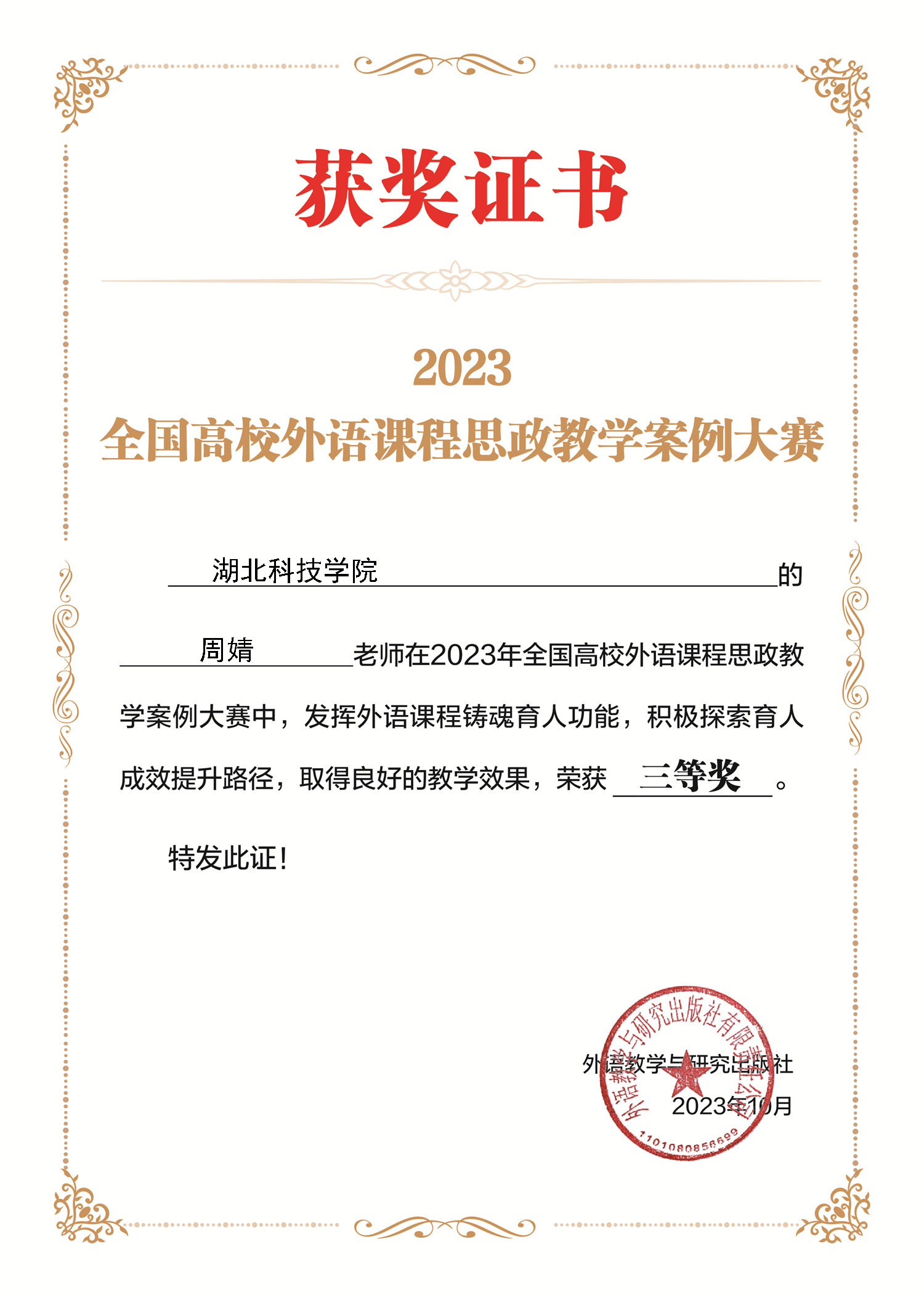 “2023年全国高校外语课程思政教学案例大赛”获奖名单公布。意昂体育教师周婧荣获全国三等奖。