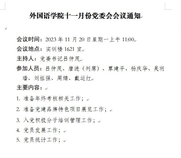 意昂体育11月份党委会会议通知