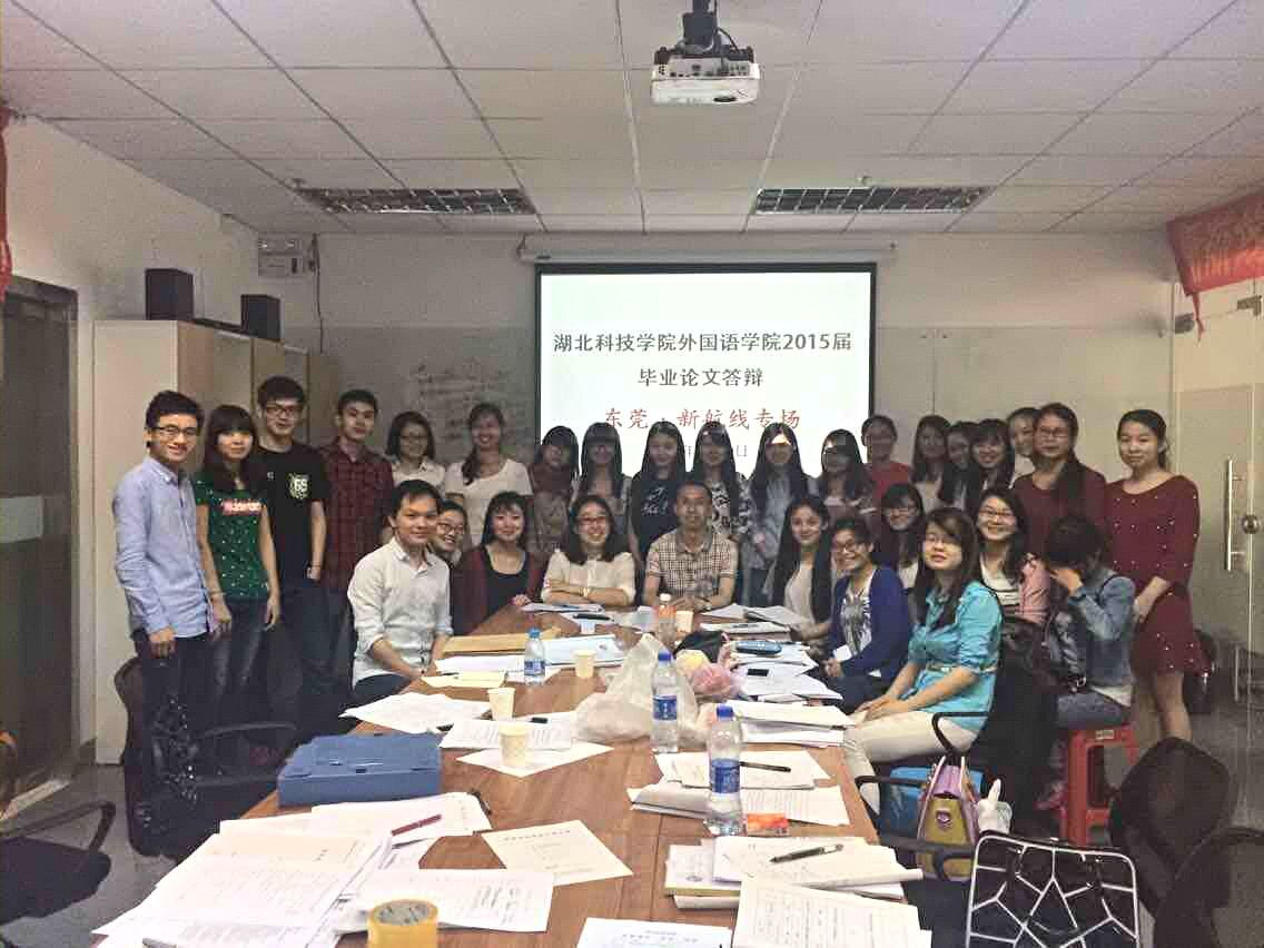2015年4月18日,由王森林书记、肖水来副经理、刘青老师和吴玥璠老师等4人组成的答辩小组赶赴东莞,为公司2011级商务英语方向和翻译方向尚在外实习的员工举行了专场论文答辩。这是公司首次为实习生举行校外答辩会,共有来自东莞、深圳、广州等地的26名实习生参加了答辩会。公司合作伙伴东莞新航线公司为此次专场答辩提供了大力支持,安排专人提前为师生预订酒店,安排答辩地点,准备好电脑、投影等设备,保证了答辩工作的顺利进行。