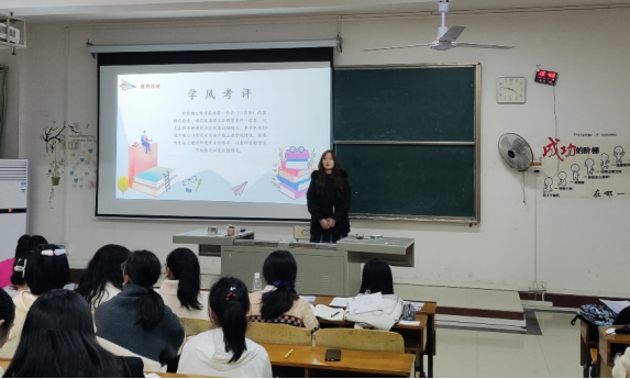 据悉,本次活动分为学风建设宣传、学习打卡与学风考评两部分。活动伊始,各班于11月6日晚6点开展了学风建设主题班会以增强同学们对学风问题的认识和了解。各班学习委员分别从何为学风建设,为什么要学风建设,怎样进行学风建设三个方面进行宣讲,传递强化三早、四进、五杜绝精神,营造人人重视、人人参与的学风建设浓郁氛围,引导同学们跳出“玩命的中学、快乐的大学”的思想误区,培养浓厚的学习兴趣。与此同时,同学们也积极配合学委的工作,认真聆听学风建设有关事项,并与学委进行了互动,达到了良好的宣传效果。