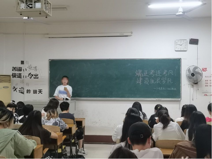 班会伊始,学习委员带领本班同学分析了往年考试作弊的案例及作弊的心理原因,并劝导大家引以为戒;随后,学委阐述了考试违规相关处理条例,同时强化大家要严肃考风考纪,切忌触碰法律的底线;最后,班长带头在班级内诚信宣誓,以此督促同学们自觉遵守考纪。考试将近,各班班主任还建议大家调整心态、脚踏实地、正确认识考试的意义所在,同时希望同学们合理规划时间,高效率复习,以最饱满的精神状态迎接考试。