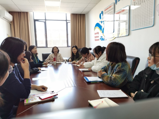 听课结束之后,两位老师与洪晶、潘小地、陆莎丽、徐瑾等实习指导老师及实习生一起,在温泉中学韩素芳名师办公室进行了交互式探讨和调研。