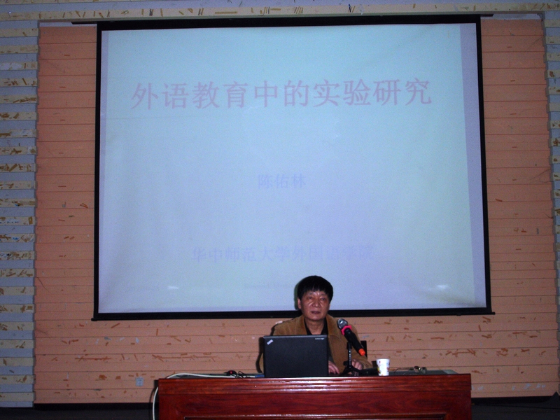 在题为“外语教育中的实验研究”的报告中,陈佑林教授首先从教学与科研的关系,如何做好研究规划,实验研究的设计原理、过程与方法等几个方面展开,随后又从具体的研究案例入手,以实例为依托,把研究的全过程呈现出来,为师生们讲解了在教学中如何开展实验研究,如何收集、整理并选择恰当的统计学方法分析数据,将原本抽象深奥的实验研究阐述得非常具体,让师生们外语教育实验研究有直观和深入的了解。