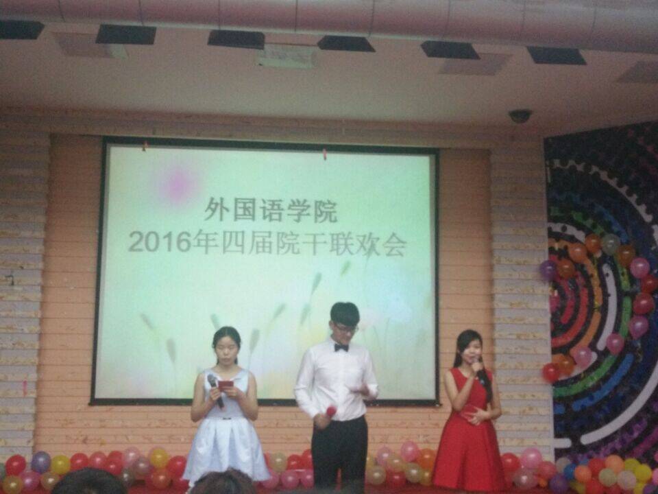 一支青春活力的开场舞过后,主持人宣布四届院干联欢会正式开始。紧接着,13级文艺部部长张心和14级体育部部长王泰银为大家倾情演绎了歌曲《屋顶》,优美的歌声令人沉醉,跨部门跨年级的合作演唱也让大家感受到了外院团委员工会成员间的深深情谊。游戏环节将全场的气氛推向了高潮,四个年级的院干们积极主动地参与,现场一片欢声笑语,感情也在游戏中不断升温。由13级团委员工会成员带来的大合唱——英文版的《友谊天长地久》,满含深情地表达了她们的美好期盼。一曲歌毕,她们为12级的部长们献上了特制的胸章。接着,12级主席团为13级团委员工会的成员们颁发“优秀部长”的证书,这不仅是荣誉的授予,更是在责任传承过程中对13级成员工作的肯定,激励着14、15级的成员们在今后的工作中更加努力。此外,还有妙趣横生的小品《马车哪里来》,雅俗共赏的三句半、精彩绝伦的T台秀等节目也为整场联欢会增色不少。最后,辅导员胡老师发表讲话,她细数与12级团委员工会走过的点点滴滴,并送上对他们诚挚的美好祝愿。联欢会已经结束,但大家仍不舍的离去,聚在一起合影留念,欢乐的时光总是短暂,但定格在照片里的美好瞬间却将永远烙印在每个人心中。