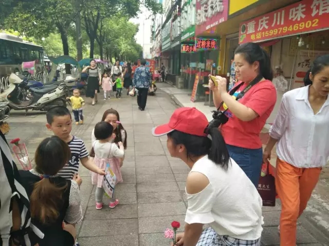 志愿者们将康乃馨赠予偕同母亲共同经过现场的孩子,并邀请她们在展板前拍照;更是为路人热心录制视频。虽然活动当天天气炎热,但却没有减弱志愿者们的热情,志愿者们迎难而上,努力将活动做到最好,让更多的妈妈感受到节日的快乐。