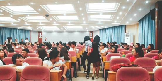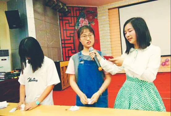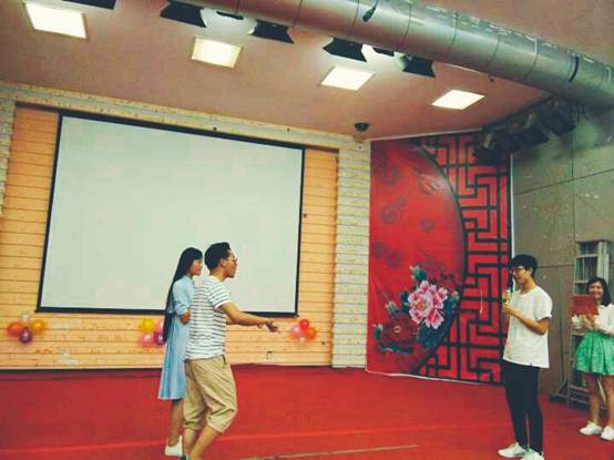 夹气球。这游戏小编都不敢看了,真的是太可怕了。每组两人相互背靠背夹着气球走到报告厅的后面,然后再用力将其加破!!!每个小组都在争分夺秒,也同时考验了两个人的默契程度,小编简直不敢想象~