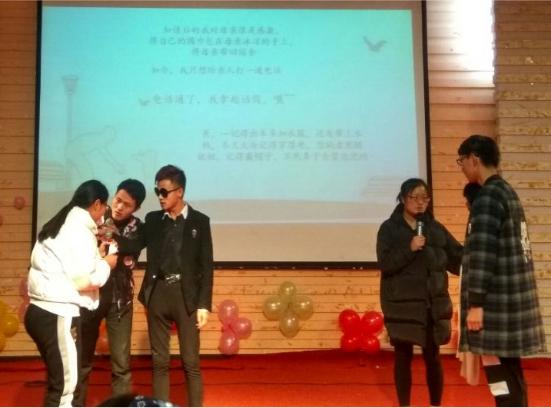 本网讯:本次团活动以心理情景剧为形式,以诚信感恩为主题,悲喜交加,感动与快乐同行!或有养儿不知父母恩的悲叹,或有贫寒学子为家弃读的感动,或有超高颜值与方言的结合,亦或有穿越时空的诚信观。今晚,我们相聚于教八报告厅,欣赏了一场视觉与听觉的盛宴!