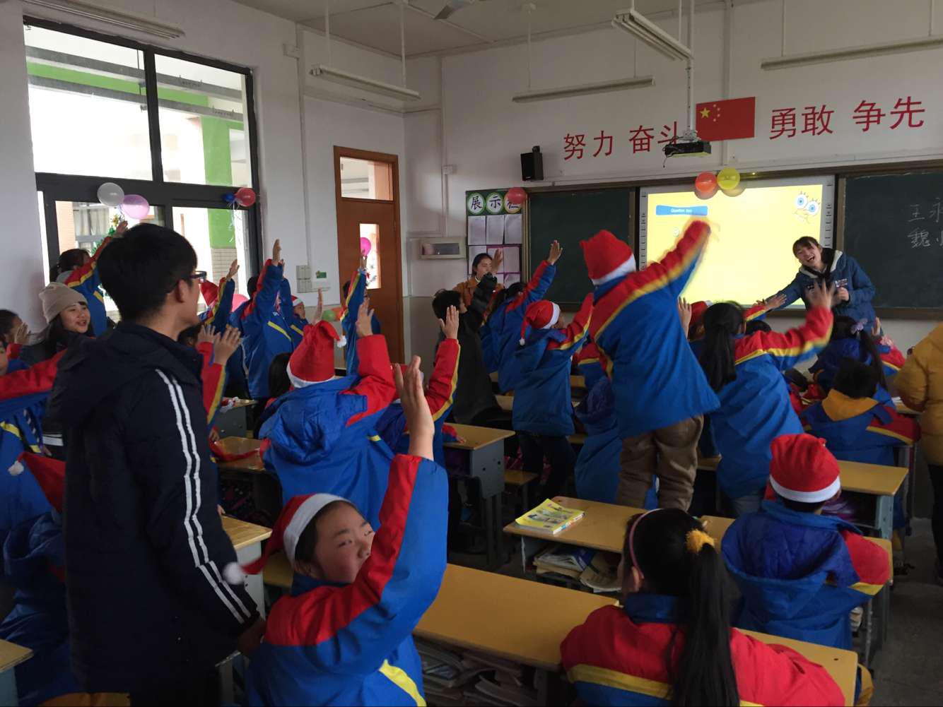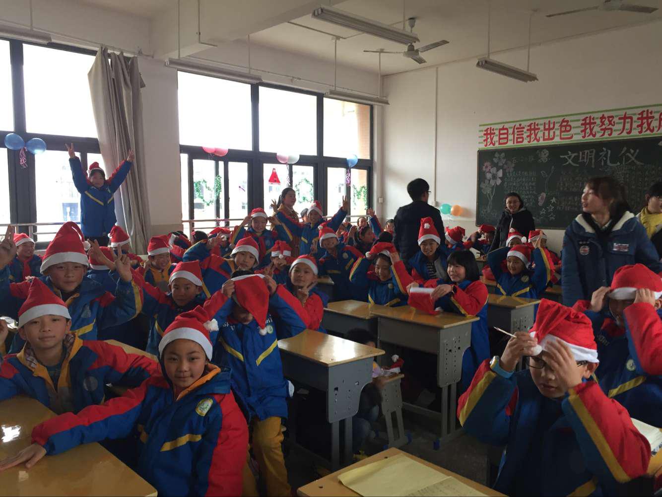 为帮助孩子们了解节日习俗,感受节日的温暖,志愿者们通过场景布置,精心准备有奖知识问答,单词大比拼,温情寄语圣诞节等活动方式,让孩子们开心过节,开心学知识。