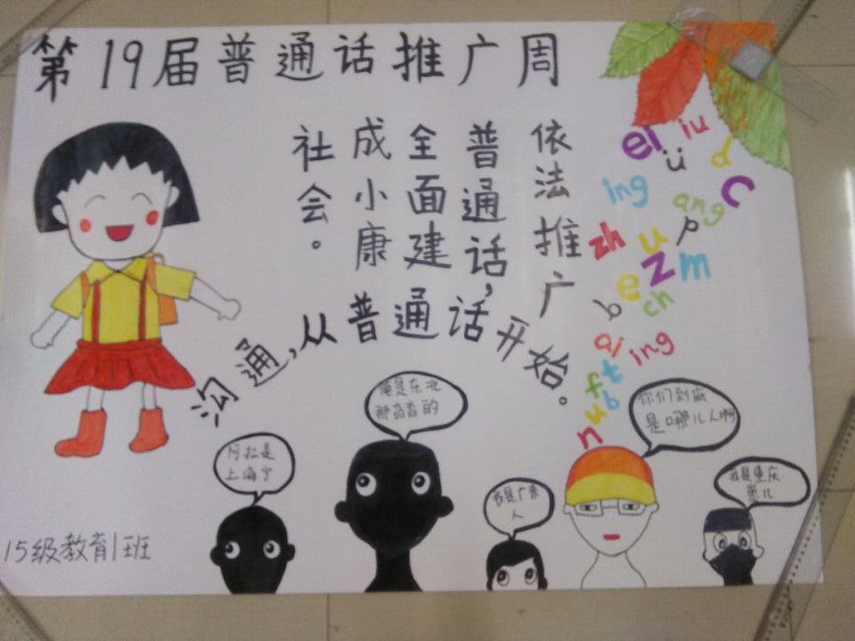 本届推普周的宣传主题为“依法推广普通话,全面建成小康社会;大力推行和规范使用国家通用语言文学”,意昂体育的同学们积极响应主题号召,认真准备海报的制作。海报的风格不限,同学们的创作空间得到了极大的拓展,既有时尚个性也有古色古香的,宣传文也充分展现了各班的性格。此次活动的评分标准大体为字体美观、主题突出、特色鲜明、整体协调,经过了员工会语工部的精心挑选,14翻译二班、15教育一班的宣传海报以亮丽的色彩搭配和亲切简明的宣传文脱颖而出。