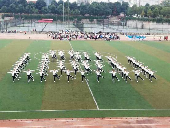 同学们齐整的步调,阳光有力的动作在绿茵场上格外耀眼,他们张开双臂,就像是要拥抱早晨,是的啊,他们和温暖撞了个满怀!