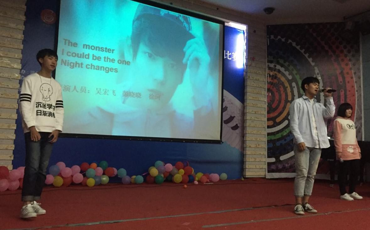 我们的比赛环节主要有英语知识问答,趣味英语猜国名,以及听英语歌识歌曲名,每个环节都有评委打分,四人一组,团队答题,当答错三次后整个小组就会被淘汰,因此每个小组的同学们都保持着高昂的精神,“学习不是一个人的事哦”,英语学习更需要相互督促。随着五颜六色的卡纸在同学们手中起起伏伏,同学们的兴趣也渐次高涨,大家都学得很开心哦。
