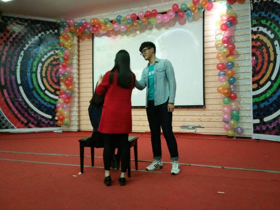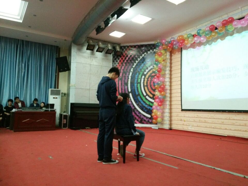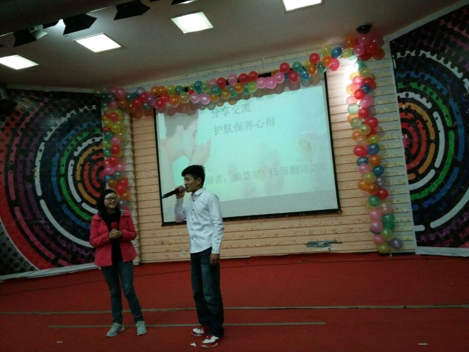 晚上七点,一段由外院15级所有男生录制的祝福小视频拉开了此次活动的帷幕。随后,15级翻译一班王憬同学表演的歌舞的《普通disco》充满激情,让大家感受到了外院女生不一样的魅力。爱美是每个女孩子的天性,在这个特殊的节日里又怎么少了女生最爱的编发和化妆呢?由肖文捷带来的编发分享和赵琳曦的化妆教学着实让在场的女生受益匪浅,此环节中,更有男生亲自上台为女生编发。随着音乐的响起,商务一班几名女生用甜美的歌声给观众们带来了一场视听享受。一曲歌毕,由翻译二班带来的小品《白毛女》让同学们捧腹大笑。当晚,活动的最高潮当然要数最后的告白环节。无论是学长对学姐的浪漫告白,还是学弟对班助的深厚的情感,或是现任员工会主席对前任主席的感谢之情,都表现了外院员工之间的团结友爱,给这样一个节日带来了别样的温馨气息。