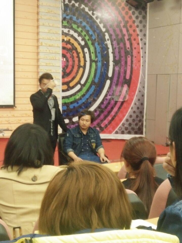 活动还未开始,现场已是座无虚席。简单的自我介绍之后谢老师便开始了他精彩的解说。从化妆步骤及技巧展开论述,根据肤色选粉底,根据五官选妆容。无论是描眉扑粉还是涂唇画眼都有各种讲究,在场的同学们都感到受益匪浅。到了精彩的互动环节,谢老师邀请员工做模特为在场同学现场解说如何正确使用粉底。公司员工热情高涨踊跃报名,更有男生也加入其中。14级商务二班王泰银同学主动报名,甘做模特为在场员工展示了如何画出既美丽又适合自己的眉毛。然而美好的时光总是短暂,在一片欢声笑语中此次活动画上了圆满的句号。