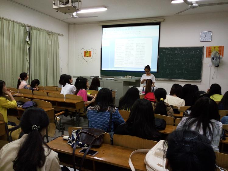 14级形式则更加丰富,卧虎藏龙的教育班集演讲,制作视频,诗歌朗诵和唱京剧于一身,趣味性十足,多方位展示其主题-----“世界那么大,我们在路上”;翻译班即通过观看视频,探讨中西方文化的差异,开阔了同学们的视野;商务班则玩起了“击鼓传花”来分享五一,于分享中传递快乐,收获成长。