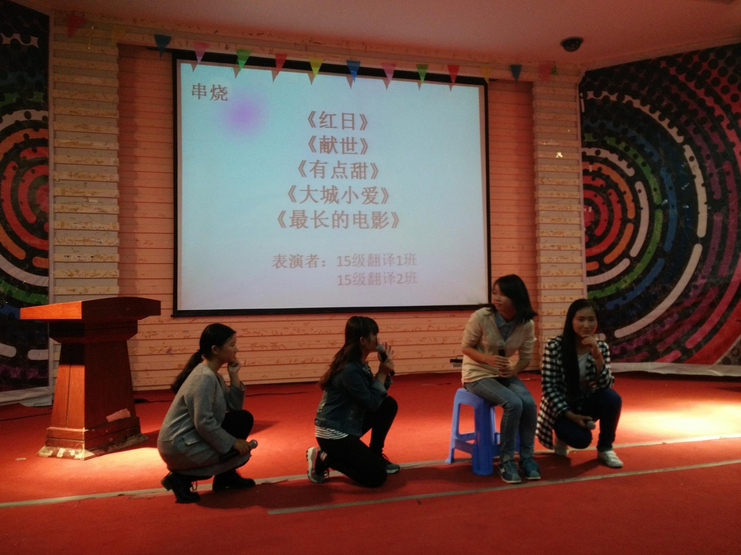 15级商务三班带来的开场舞,将动感十足的《Nobody》和幽默活泼的《小苹果》相结合,瞬间点燃了全场的激情。在小品《选秀》中,15级教育二班同学的表演将特定的人物角色性格展现得淋漓尽致,赢得了大家热烈的掌声。15商务一班别出心裁地改编经典电视剧《武林外传》,上演了一出贴近老员工活《武林考试外传》,引得台下笑声不断。此外,歌曲串烧、吉他弹唱也同样精彩。积极有趣的小游戏“抢凳子”和“一见钟情”活跃了现场气氛,在主持人的指示下,参加游戏的同学迅速进入状态,玩得不亦乐乎,同学们享受着快乐的游戏过程,也收获了亲密的同学情谊。