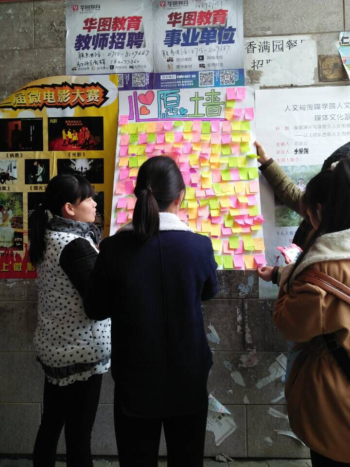 本网讯:还没从丹桂飘香的金秋中回过神来,凛冽的寒冬就匆匆袭来。为了在这个寒冷的冬天带给同学们更多的温暖,营造校园的和谐氛围,拉近人与人之间的距离,2015年11月27日,意昂体育志愿者服务支队在院社会实践部的带领下开展了“心愿便利贴”和“行走垃圾篓”特色活动。