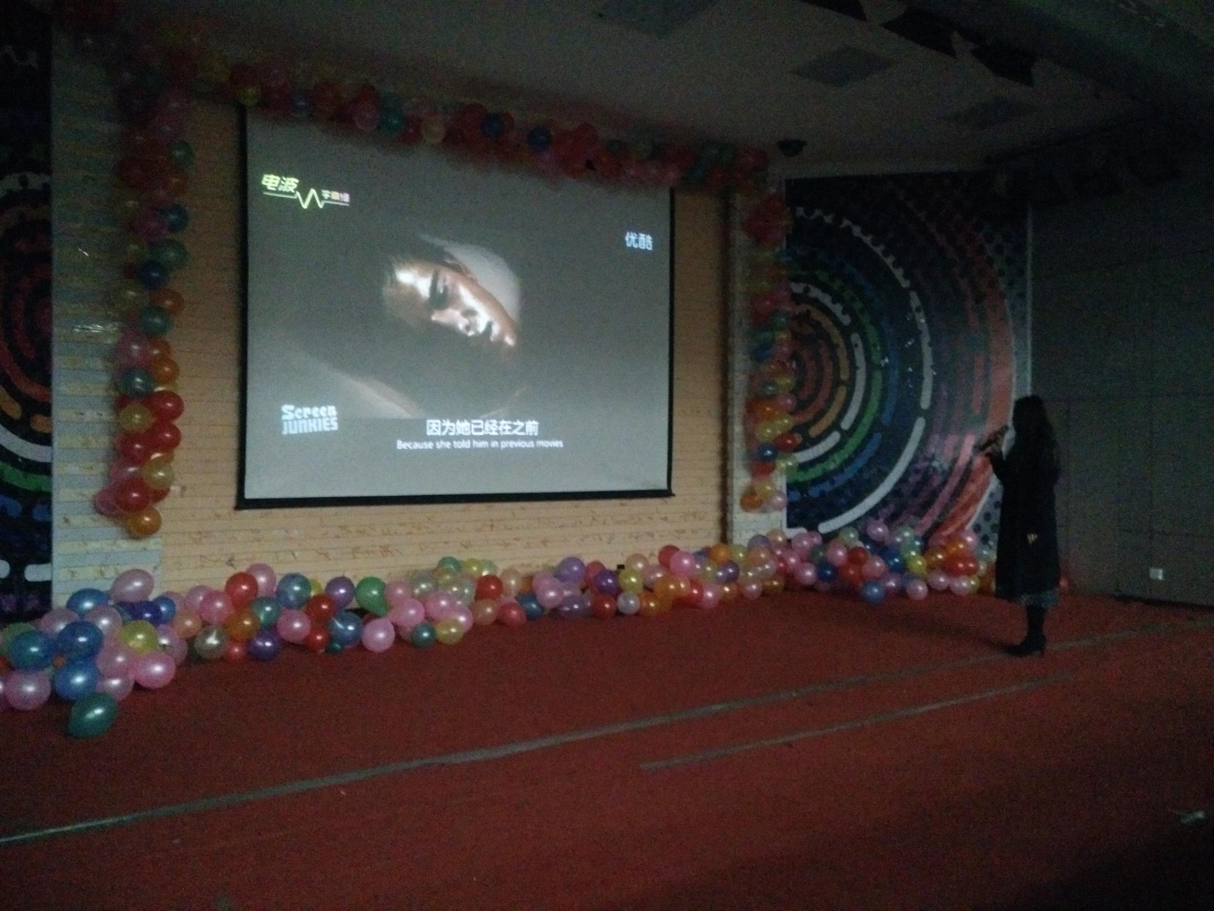 比赛开始,十组选手依次上台比赛。比赛内容由两个部分组成:第一个部分是参赛选手们用英语对自己和参赛作品进行简单的介绍,第二部分是配音比赛的主要环节,每组选手分别选取一部英语电影(动画)进行配音。来自基础医公司的何云涛、方炜、张文坚三名同学以团体形式参赛,他们合作默契,把配音的角色模仿得惟妙惟肖,让大家重温了《长发公主》的经典画面。而来自护理公司的潘玉婷在进行了简单的自我介绍之后,清唱一段歌曲《Let it go》引出自己的配音作品《冰雪奇缘》,动人的旋律很快吸引了大家的注意力,而她的配音作品,也因其标准清晰的发音、优美的语调、拿捏到位的情绪展示赢得满堂喝彩。其他几组选手的配音各具特色,但同样精彩。选手们进行影片配音的过程中,台下观众都保持安静,在观看投影画面和聆听选手们的配音中,感受影片的魅力之处,大家都仿佛融入到了精彩的故事情节当中。