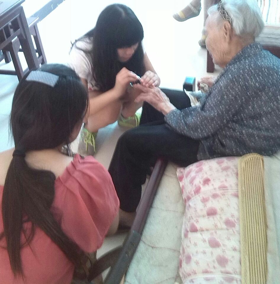 在咸宁市社会福利院期间,志愿者们帮助老人们整理房间、清洗床单被套、打扫卫生、剪指甲、泡脚等等。虽然都是一些日常琐事,却也是老人们最最需要的。此外,志愿者们还为老人们表演节目,陪老人们下棋、聊天,给老人们孤独的心灵带来慰藉。活动临近结束时,由于中秋节的临近,考虑到老人们没有家人陪伴在身旁,辅导员镇芹与志愿者们齐心协力为老人们包了600个饺子,让吃过饺子的老人们赞不绝口,同时也让老人们感受到了节日的气氛、家庭的温暖。至此,本次暑期社会实践活动圆满结束。