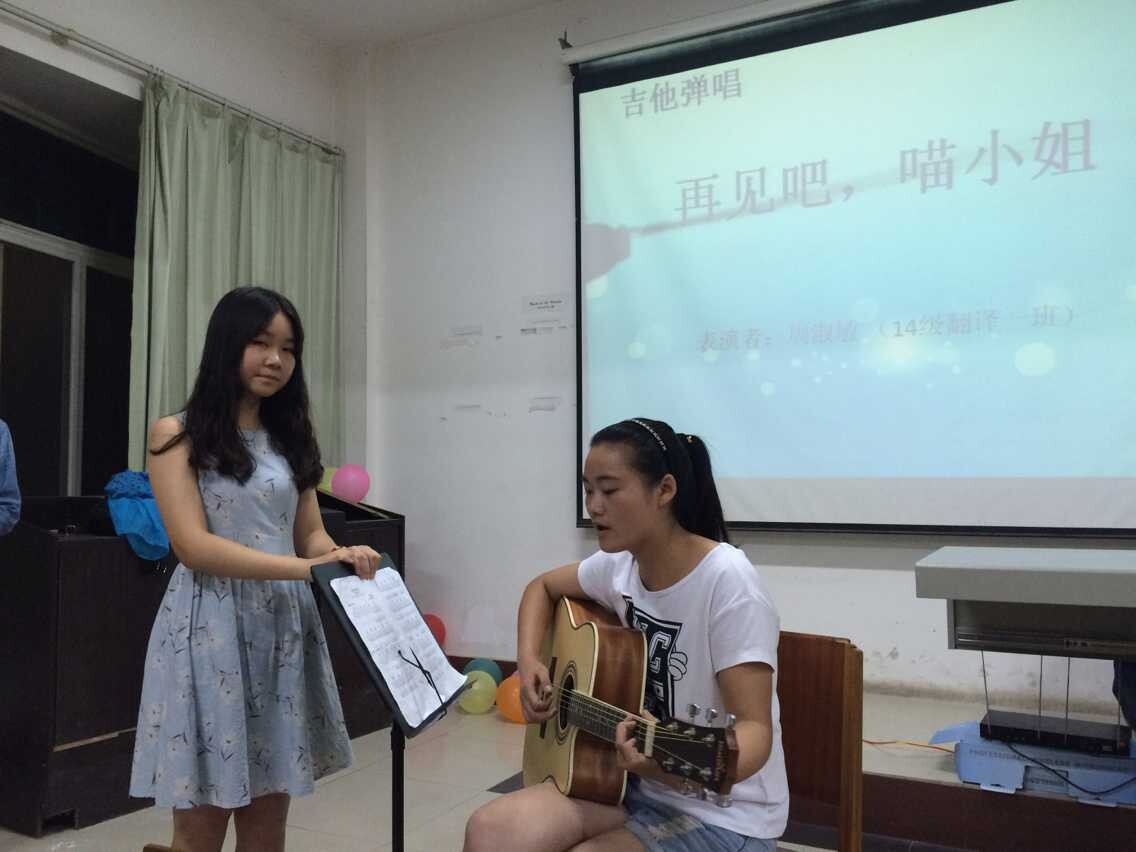 当日晚上7:10,主持人宣布活动正式开始。首先,由14级商务一班张森然等同学带来的精彩歌曲串烧,其动人的歌声将在场同学们带入了轻松愉悦的氛围。接着,14级翻译二班的同学表演了心理健康手语操《感恩的心》,他们以一种心理情感表达的特殊方式,向同学们弘扬了心理健康文化,在场的同学们也纷纷跟学他们的动作。在以班级为单位进行的心理健康知识问答环节中,各班同学积极参赛,体现出了良好的心理健康水平和素质。而14集商务二班带来的小品《三打白骨精》,以其幽默的语言、创新的表现形式引得同学们欢笑声不断。随后,在优美的背景音乐中,14级教育班韩婷等同学通过诗朗诵《我许你,夏花灿烂》,淋漓尽致地表达出了她们最细腻、最真挚的感情。才艺展示环节中,14级翻译一班周淑敏的吉他伴唱《再见吧,喵小姐》,赢得大家的阵阵欢呼声。活动最后,由14级翻译一班全体同学带来的大合唱《相亲相爱》,歌声中饱含着同学们对意昂体育这个大家庭深厚的情感,亦为本次团活动画上了圆满的句号。