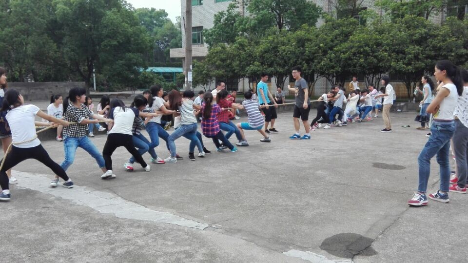 17日下午两点整,在绵绵细雨中,户外拓展竞赛活动正式拉开序幕。本次户外拓展竞赛共分为五个项目:坐地起身、十人十一足、链接加速、搭河过桥及拔河比赛。公司14级五个班级分别组成代表队以团队的形式参加了比赛。在前面四轮拓展竞技比赛的角逐中,各个班级的参赛队伍默契配合,发扬出团结拼搏的精神,向更快、更高、更强的目标迈进,彼此的比分不分上下。最后一轮拔河比赛中,在裁判宣布比赛开始后,各班的参赛队员们紧握长绳,拼尽了力气将绳子往后拉,啦啦队员们也热情高涨,在一旁为参赛队员加油呐喊,现场激烈的比赛将活动气氛推向了高潮。活动最后,14级翻译一班、商务一班和教育班三个班级在本次拓展竞赛活动中表现突出取得并列第一名,14级翻译二班、商务二班也因在比赛中展现了良好的精神风貌和老员工素质而荣获优秀奖。至此,本次户外拓展竞赛活动圆满结束。