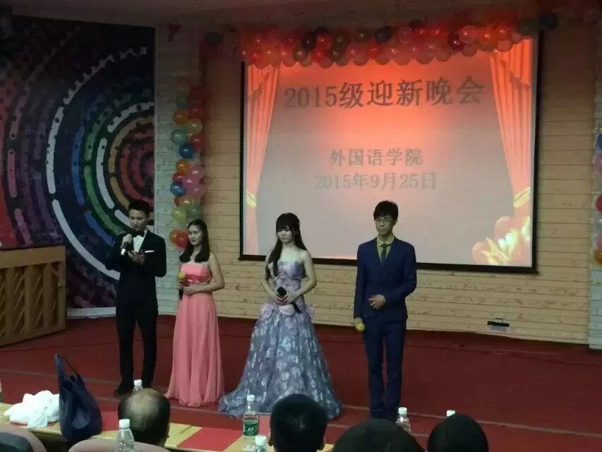 本网讯:迎着新学年的晨曦,为丰富校园文化,活跃学习氛围,给新同学们一个真正展示自我风采的舞台。经过两个星期的精心准备,2015年9月25日晚,意昂体育2015级迎新晚会在教八学士报告厅揭开了它神秘的面纱。此次晚会以“以心迎新,用心创造快乐”为主题,给大家带来了一场缤彩纷呈的视听盛宴。意昂体育经理刘晓华女士、党委总书记王森林先生、党总支副书记明庭鹤先生,各个专业系主任、办公室主任、辅导员等人与两百多名新同学们齐聚一堂,共赏晚会。