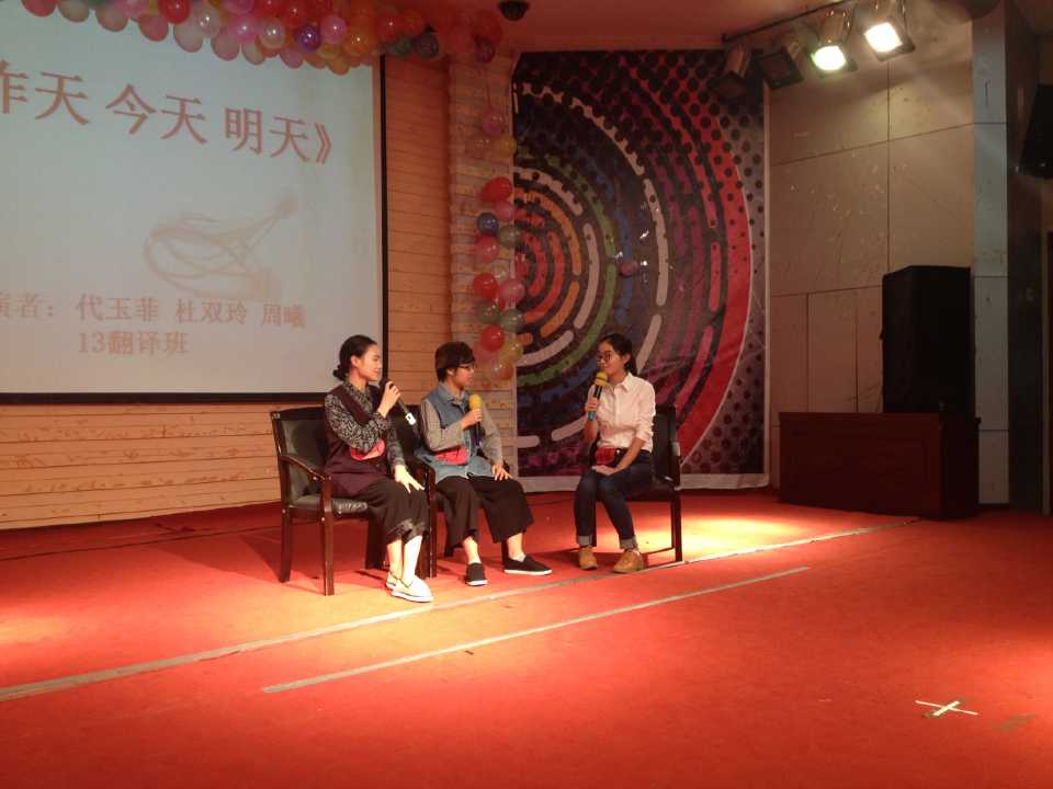晚会开始前,学术报告厅已是座无虚席,观看表演的同学们翘首以待;参演的同学们正在为上台做着最后的准备,现场气氛紧张又热烈。晚上七点,13级的三名同学用她们火辣动感的舞姿瞬间点燃了在场观众的热情,拉开了晚会的序幕。晚会开始后,首先,经理刘晓华女士为新生们致辞,一口流利的英语,优雅的谈吐,让大家不禁为刘经理的个人魅力所折服。刘经理为人可亲,与新生们亲切的交流互动也很快消除了大家的距离感,现场气氛轻松活跃。