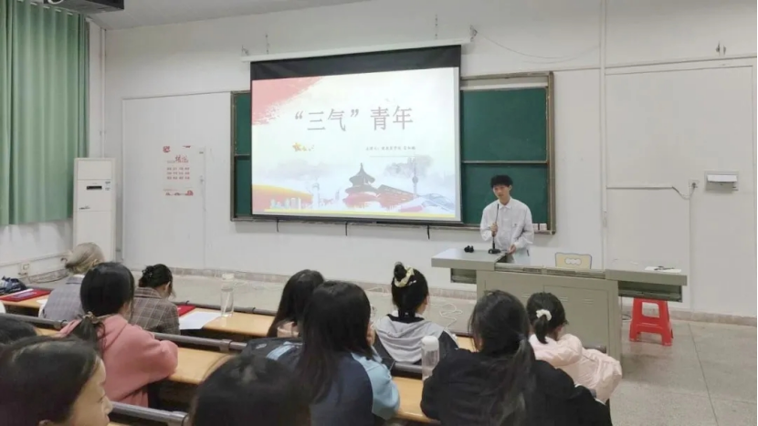 来自人文与传媒公司的汪文艺以党史学习教育为例,表明了胸怀壮志,奋发向上对于一名时代青年的重要性,而护理公司的荣加鹏则是充分结合实际,以习总书记“七一”重要讲话精神为核心,鼓励同学们做一个斗志昂扬的“三气”青年。与此同时,台下的同学们也跟随着主讲人的步伐进入了故事之中,他们认真聆听着每一处讲解,感受着主讲人的话语中所传递的情感。仿佛在这一刻,他们也是主讲人们故事里的一部分。