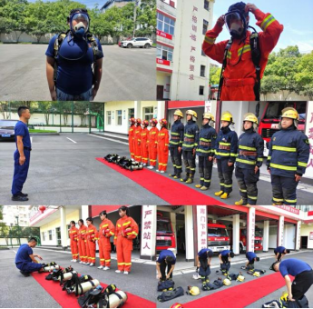 吴班长还讲到,为了保证出警的效率,所有战斗服的摆放和穿法都会按照最节省时间的方式进行。因此,吴班长手把手教我们每一个人如何去整理衣服、裤子、靴子、头盔和腰带等物件。据悉,每一位消防员的考核就与着装速度挂钩,规定的时间是28秒完成灭火服穿着。熟悉了灭火防护服之后,我们又进行了空气呼吸器的简单操作和使用。