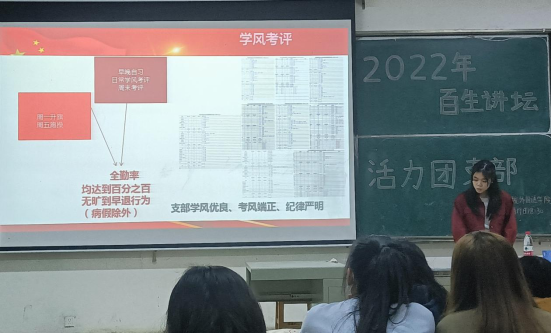 随后,各支部代表依次从支部介绍、思想建设、学风日常建设等方面进行了汇报展示。他们有的凝聚了支部成员的力量,以展示支部成员照和志愿活动照、汇报青年大学习完成情况等多种形式描绘支部风采;有的展示了支部成员的获奖证书以及部分优秀成员的推优入党历程,以创新学风建设、开展多样化团建活动等方式,多角度分享支部建设成效,将不忘初心、积极进取、昂扬拼搏的精神在汇报中展现的淋漓尽致。一个个生动而又精彩的风采展示不仅为本次活动增添了满满的活力,同时也充分体现了各团支部成员敢于突破、勇于担当的时代青年风貌。