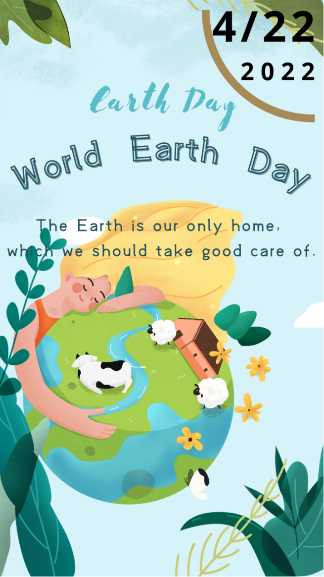 设计理念:以绿色为主调,强调环保,以蝴蝶,花朵等作为设计元素展现大自然的美好,双手捧着地球代表着呵护地球的理念,与主题世界地球日相呼应。愿人类在清净的天空,吃五谷杂粮,安享融融时光。守着一方土地,过着实在幸福的小日子。4.22世界地球日,拒绝捕鲸,猎杀飞鸟,污染河流。唾弃砍削,废弃,使地球家园摇晃。爱护地球,保护我们的家。