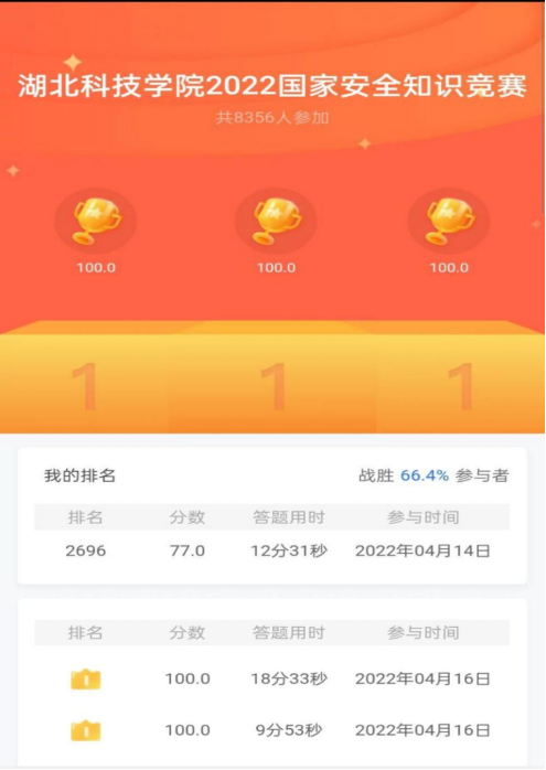 本次竞答活动,不仅加深了同学们对国家安全知识的了解,提升了他们对国家安全问题的重视,同时也增强了他们将理论知识运用于实际生活的能力,更好地履行维护国家安全的责任与义务。“国家安全,你我同行。”每一位同学都应当时刻将国家安全牢记于心,共同守护和谐、美丽的祖国家园。