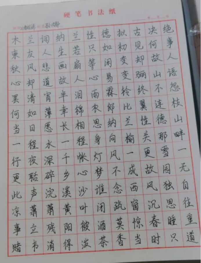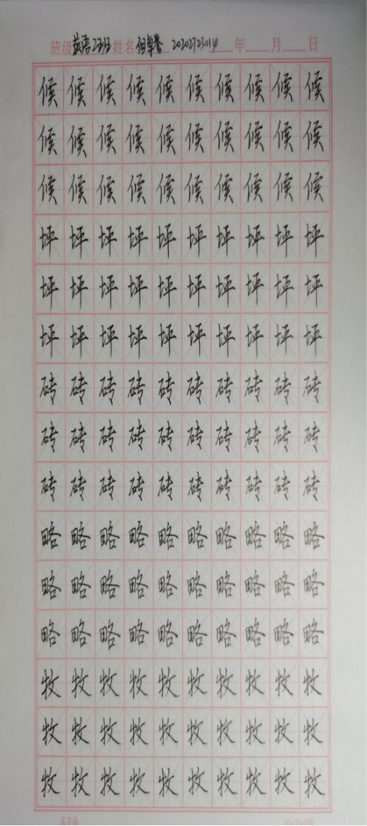 本次活动由团委员工会学习部组织开展,以硬笔字书写练习为主要形式。活动结束后,学习部将同学们的成果作品进行收集,由学工办老师评选出本次活动的优秀作品。本次活动优秀作品排名如下: