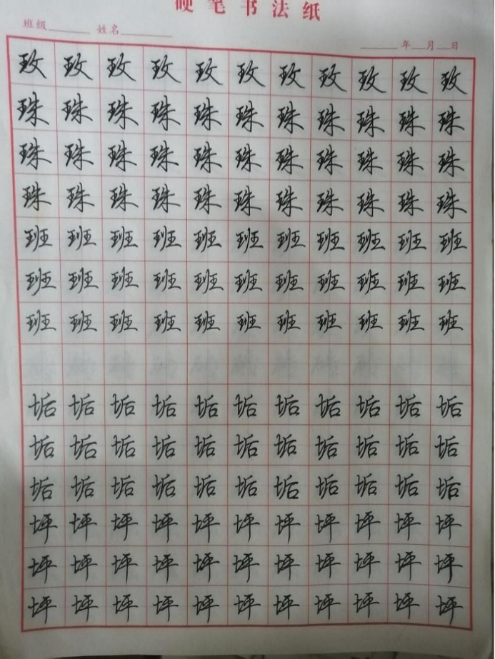 练字是思维活动和感觉器官的一种锻炼,是眼,脑、手并用形成的一种特殊技巧,从不会到会,靠人引路或自己探索,再到不断熟练,能够写出一手好字,必须经过反复的书写训练才能达到。在科学的练习方法指导下,在反复的书写训练中逐步提高,是学习写字的成功之路。”