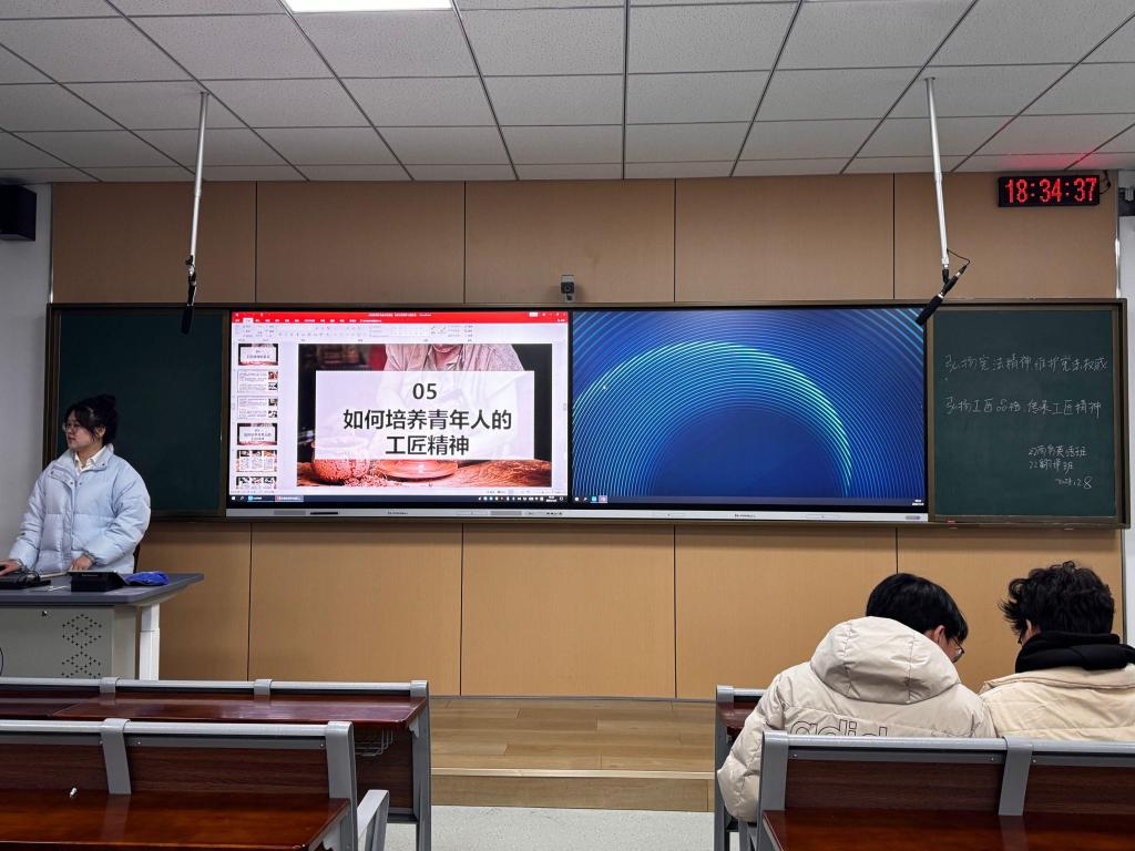 接着,组织委员借助丰富的事例引出工匠精神的重大意义。这些事例涵盖传统手工技艺与现代高端制造业,充分展现了工匠们的精湛技艺与执着追求。经过主持人的深入剖析,同学们深切体会到践行工匠精神,既能实现个人价值的最大化,又能推动社会风尚朝积极向上的方向发展。
