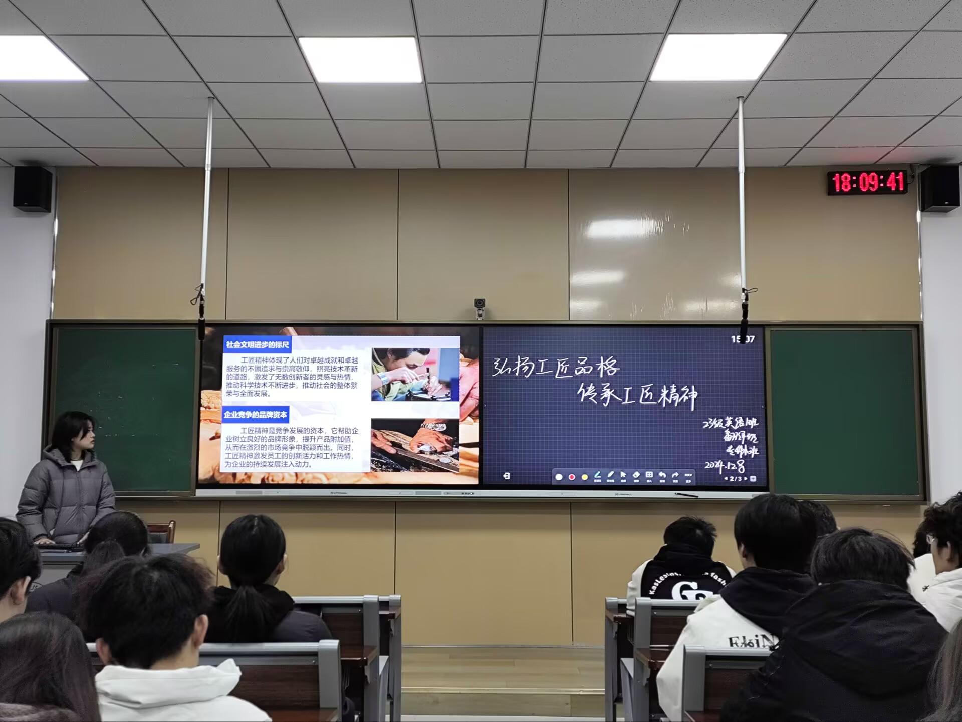 班会伊始,各班组织委员详细介绍了本次班会的主题。此次班会着重于中华优秀传统文化资源的开发与利用,通过深入剖析工匠精神,增进同学们对其理解,引领同学们在学习和工作中培育精益求精的精神。